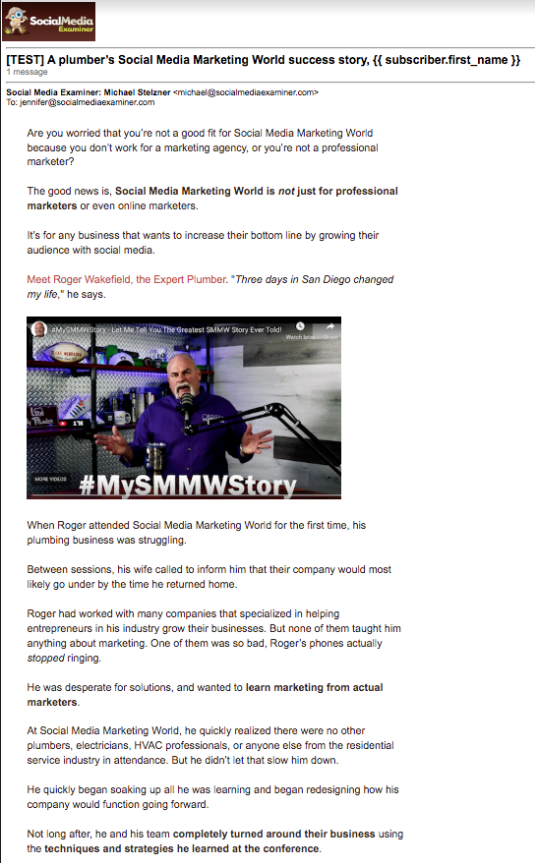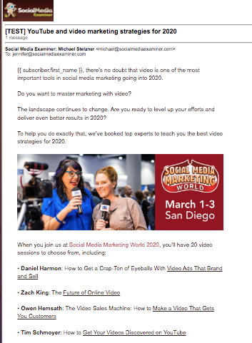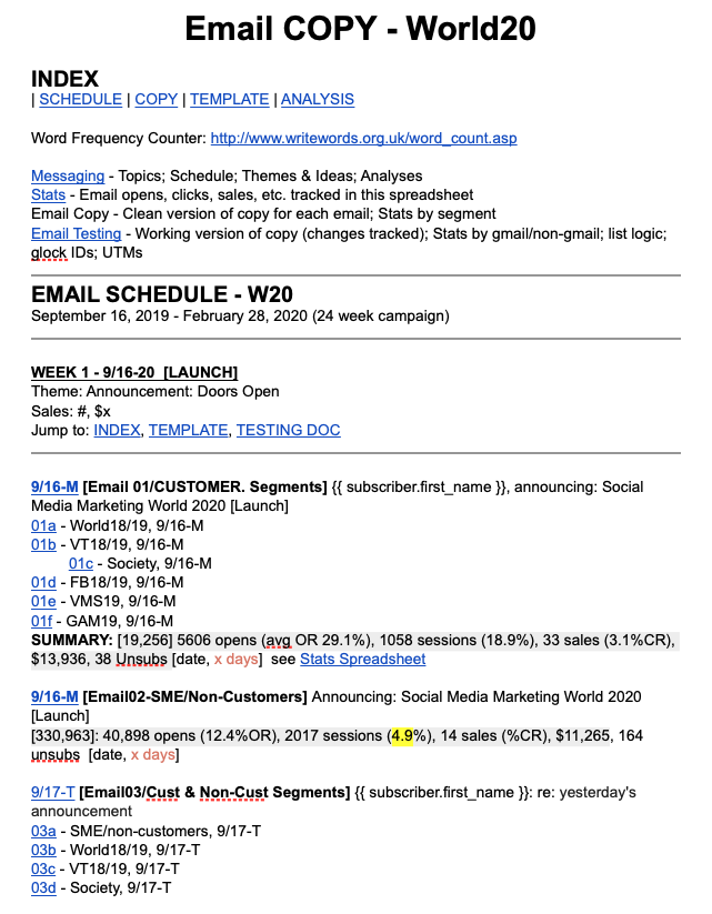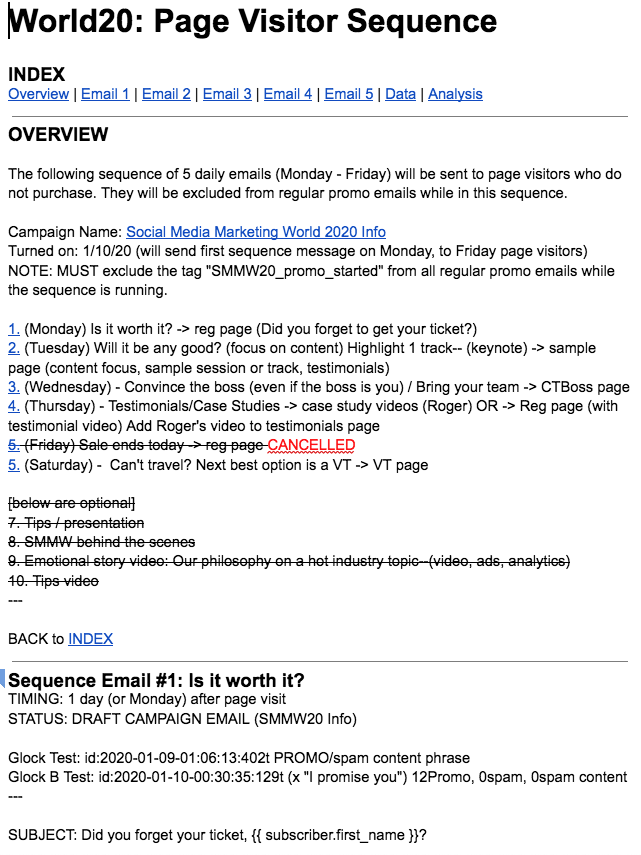 The images on this page provide a glimpse of the 24-week email marketing campaign promoting the Social Media Marketing World conference in 2020. We were extremely lucky to have scheduled the conference for March 1-3, 2020–one week before the pandemic shut everything down. Ours was the last event held at the San Diego Convention Center in 2020.